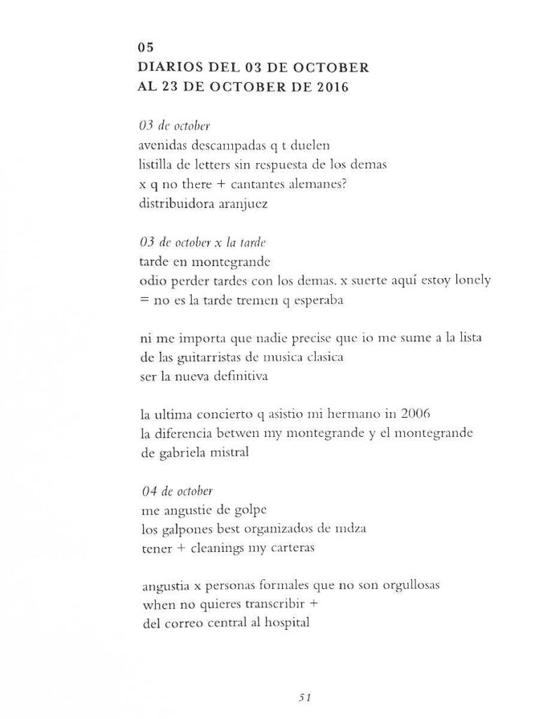 Conclusiones del 14 de octubre: “today será la ultima morning no invernal q sali at streets” “io casi no tengo diversiones x fuera de mi misma”.